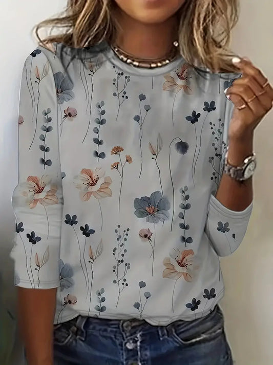 Floral Print Crew Neck Long Sleeve T-Shirt